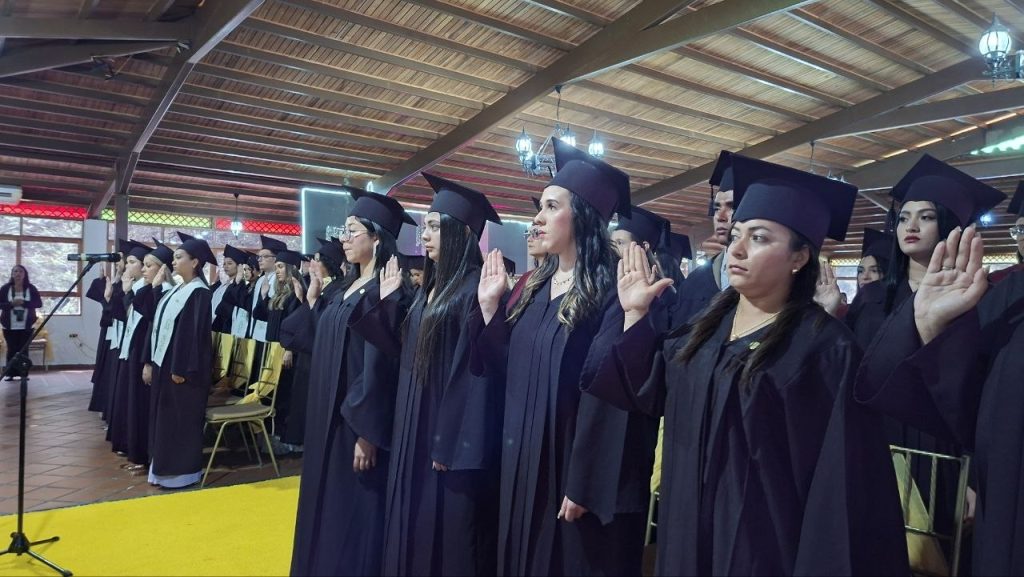 Debido a la magnitud del grupo de egresados, la jornada se llevó a cabo en dos tandas, permitiendo que familiares y amigos compartieran de cerca la emoción del triunfo alcanzado.